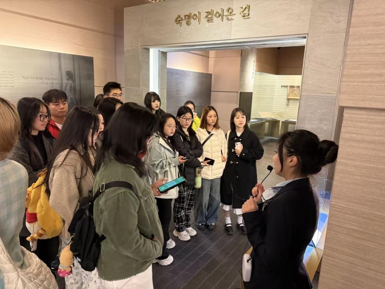 欢迎仪式后,师生们在淑明女子大学学生讲解员的带领下参观了优美宁静的校园与记载着百年学术脉络的校史馆,通过实地走访和珍贵史料,直观感受了淑明女子大学深厚的办学传统与独特的教育文化。