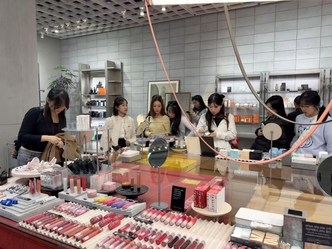 企业参访环节为同学们提供了近距离观察韩国产业创新实践的宝贵机会。在韩国最大的美容化妆品集团爱茉莉太平洋,师生们参观了品牌体验馆,深入了解其产品设计和品牌营销的创新体系。