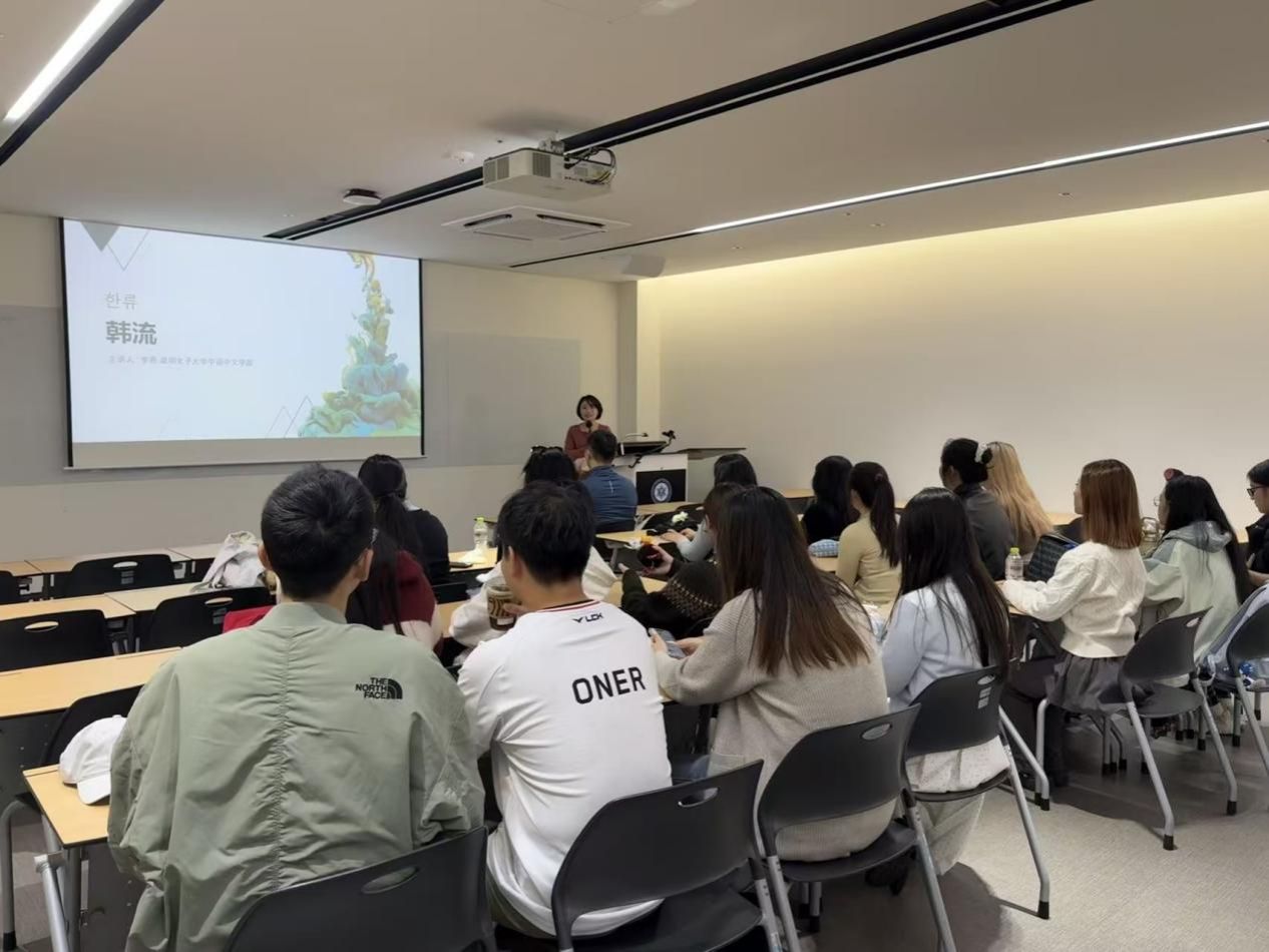 李燕教授带来的《韩流》专题研讨,则从文化研究的维度展现了韩国软实力。通过详实的数据分析和生动的案例展示,系统阐释了韩国流行文化在影视制作、音乐产业、时尚美妆等领域的创新实践与全球传播策略。讲座现场,师生围绕文化创新、青年责任等议题展开讨论,思维的火花在交流中不断迸发。