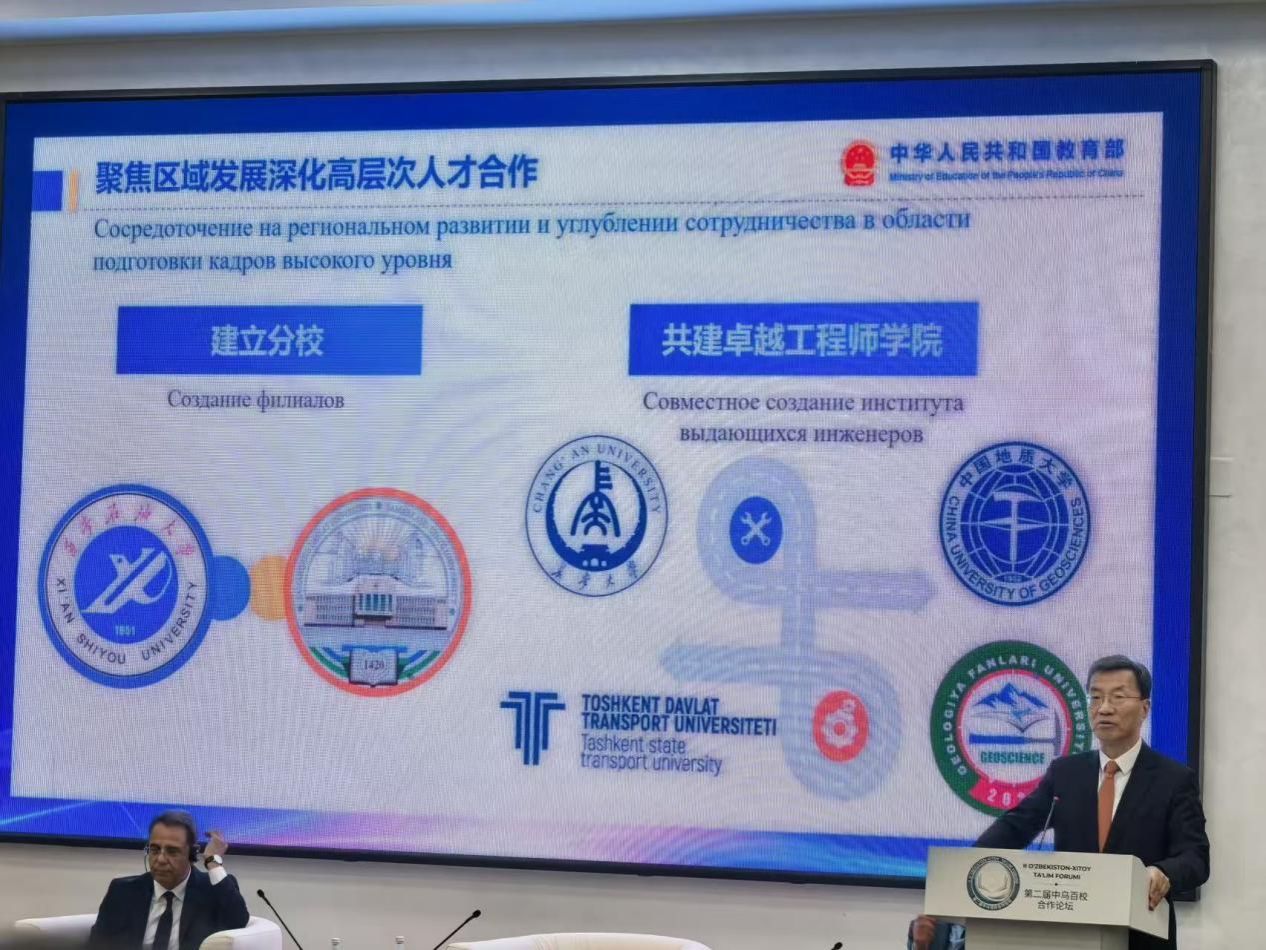 怀进鹏部长在论坛致辞中介绍中乌高层次人才培养成果时,特别提到西安石油大学在乌兹别克斯坦建设分校项目。怀进鹏强调,中国愿与乌兹别克斯坦加强政府间对话,支持高校开展高层次人才培养和科研创新合作,促进青少年双向交流。