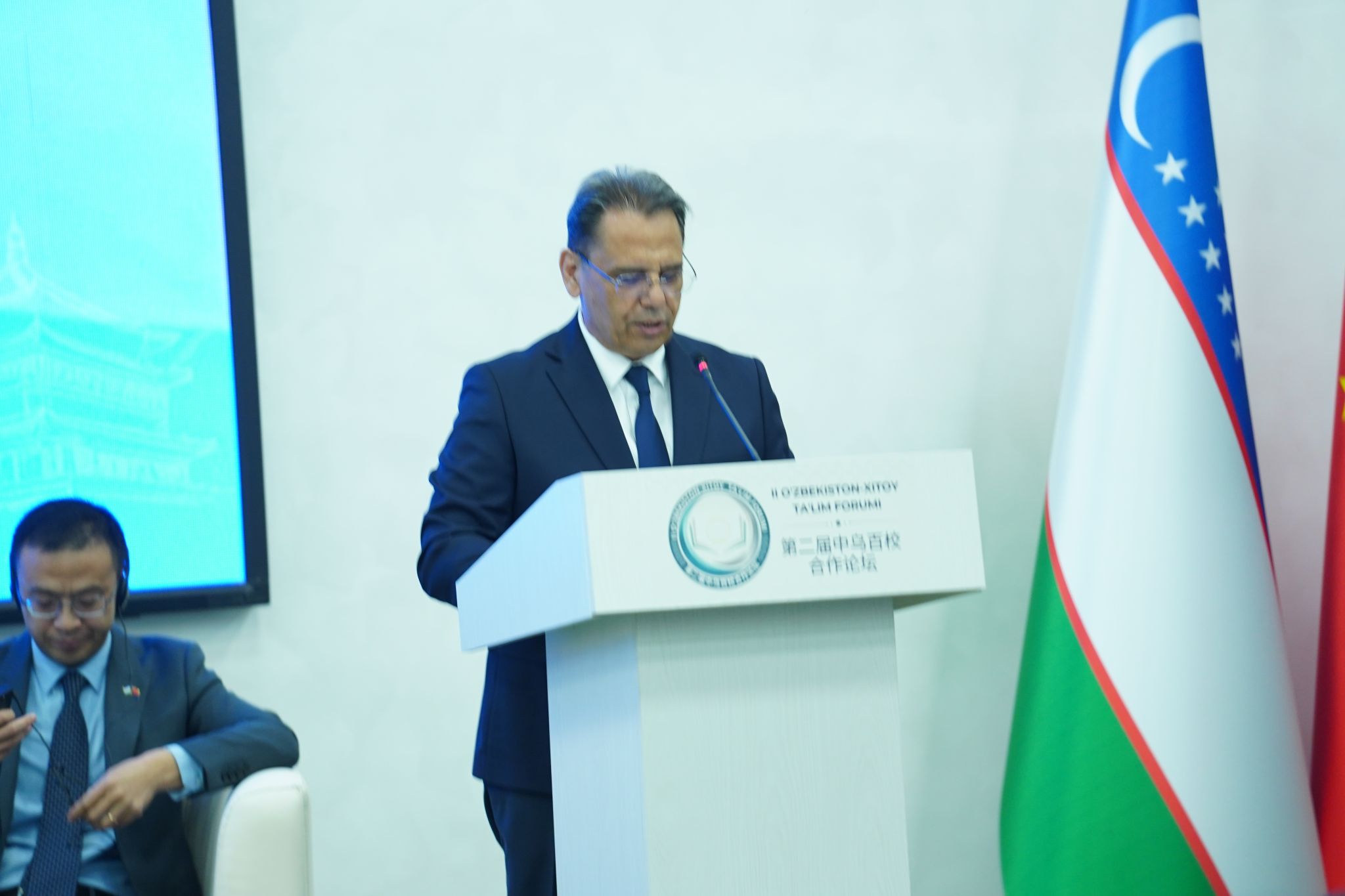 当地时间11月2日下午,在塔什干举办的第二届中乌百校合作论坛开幕式上,乌兹别克斯坦高等教育、科学与创新部部长康格拉特拜·沙里波夫和中国教育部部长怀进鹏在致辞中均对我校在乌兹别克斯坦建设分校予以关注。